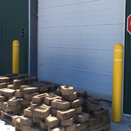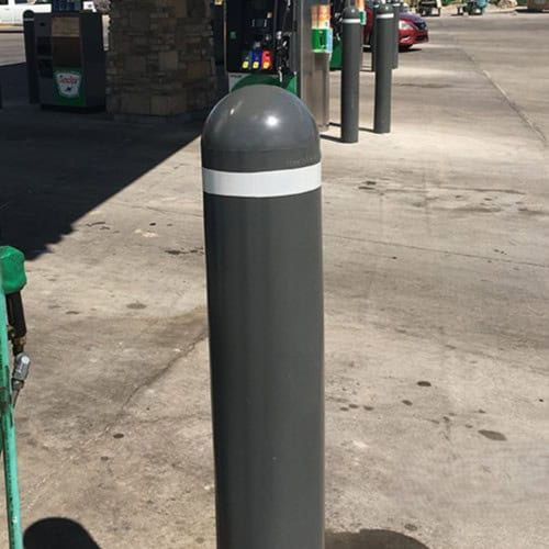 Barron Equipment and Overhead Door offers dome‑top bollard covers with a 0.125-inch wall thickness for added visibility and protection. These reflective covers are designed for 4" or 6" pipe sizes and include grooves near the top so reflective tape can sit flush against the sleeve for a clean, finished look.