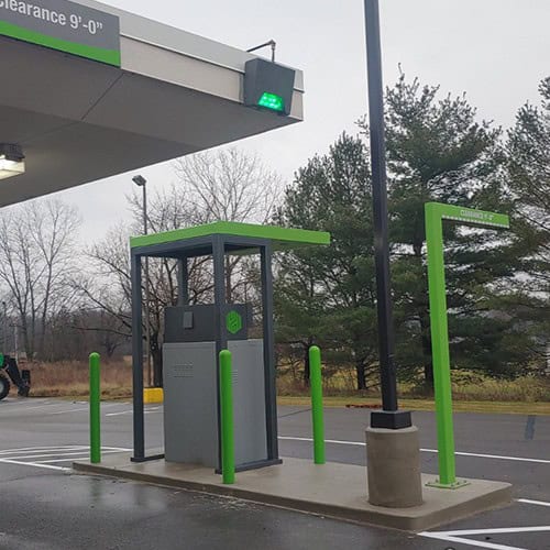 - EV charging stations and service lanes
