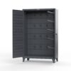 This rigging cabinet is built from strong 12‑gauge, all‑welded steel, giving it long‑lasting strength for daily industrial use. It includes 40 adjustable welded hooks, which help you organize chains, slings, and hoists in a clean and easy‑to‑reach way. The chain storage rack also uses a 3‑point locking system that works with a standard padlock or an optional electronic keypad, helping you keep your tools safe and stored in an OSHA rigging cabinet.
