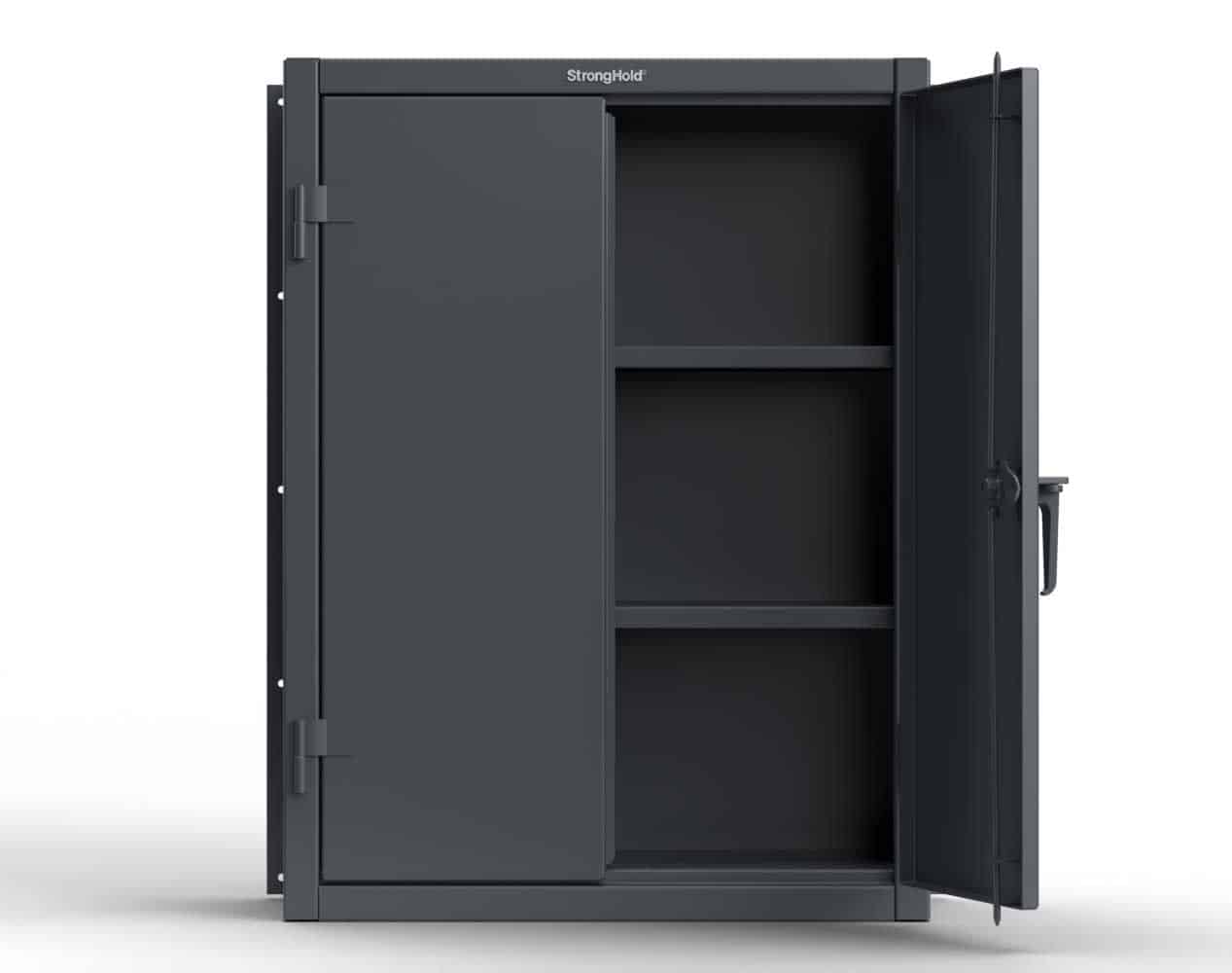 Our wall mounted cabinets give you strong and dependable storage solutions for industrial work areas. Each wall mounted cabinet is made from heavy duty steel, offering solid protection for tools and equipment while saving valuable storage space. These units mount directly to the wall, creating reliable storage options without taking up floor room. Strong Hold’s high quality design uses reinforced, wrap‑around welds for long‑lasting performance.