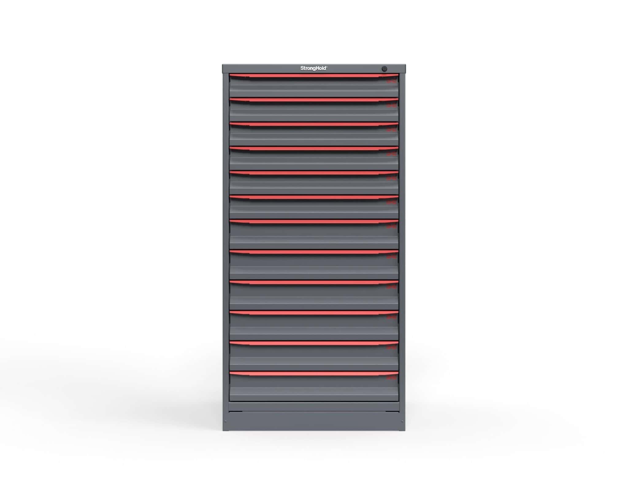 The S3060‑PPDAS‑1203 Modular Drawer Storage Cabinet is a full‑height tool storage cabinet designed for secure and organized industrial storage. Built from 14‑gauge all‑welded steel, this Strong Hold unit stands 60 inches tall and includes twelve heavy duty drawers—six 3-inch and six 4-inch drawers—each rated for 400 pounds. It ships fully assembled, includes a divider kit, and uses a keyed lock for secure storage. With its 3-inch integrated legs, the cabinet can be moved easily with a pallet jack or forklift. Proudly made in the USA and backed by a 99‑year warranty, it offers reliable, long-term modular drawer storage for demanding environments.