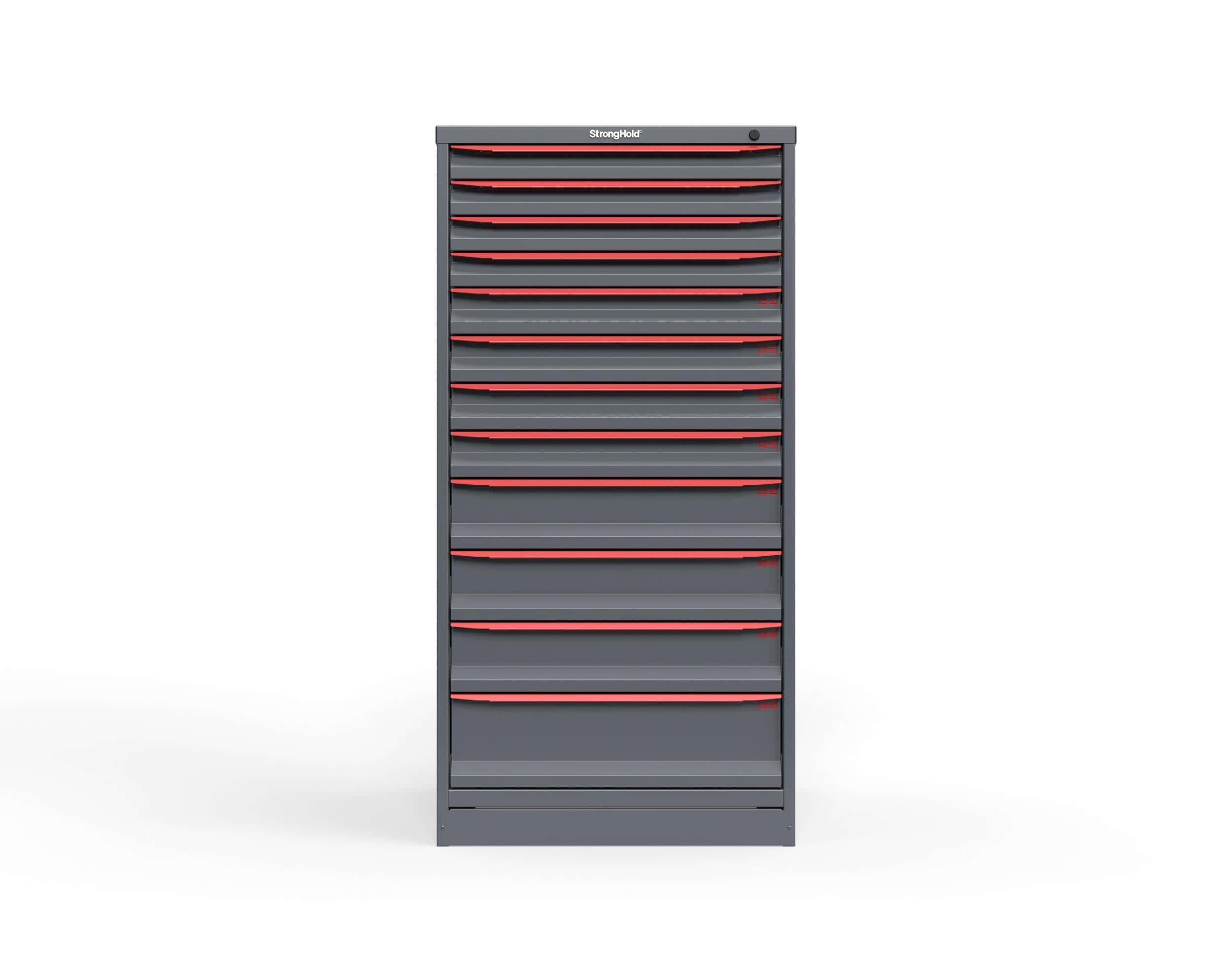 The S3060‑PPDAS‑1202 Modular Drawer Storage Cabinet is a durable, full‑height tool storage cabinet built for demanding industrial environments. Made from 14‑gauge all‑welded steel, this Strong Hold cabinet features 12 heavy duty drawers in multiple depths, making it ideal for storing small components, medium tools, and larger equipment. Each drawer supports 400 lbs and fully extends for easy access. The cabinet ships fully assembled, includes a divider kit, uses a keyed locking system, and stands on 3-inch integrated legs to allow pallet‑jack or forklift movement. Proudly made in the USA and supported by a 99‑year warranty, this unit provides reliable, long-lasting modular drawer storage.