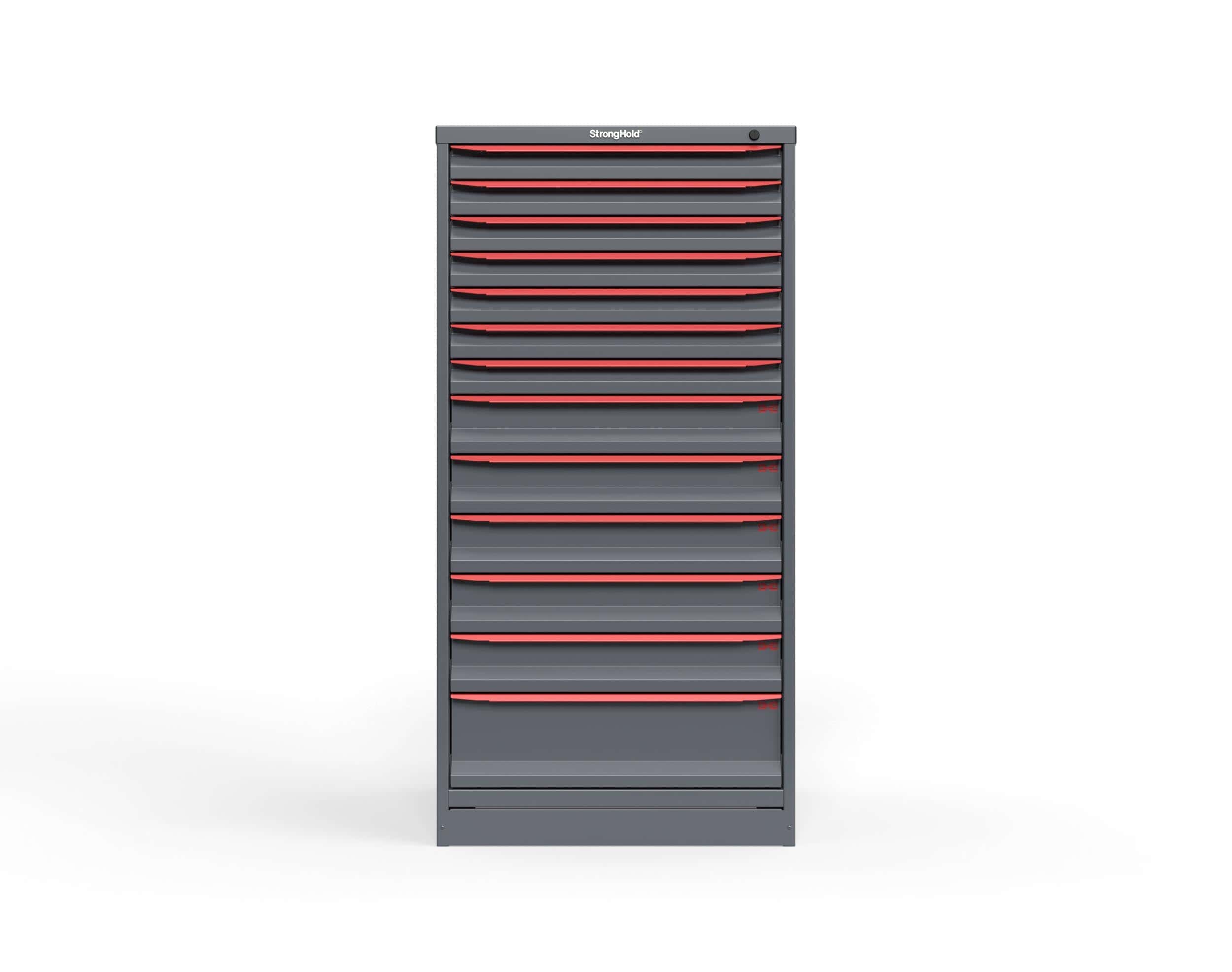 The S3060‑PPDAS‑1302 Modular Drawer Storage Cabinet is a heavy‑duty tool storage cabinet built for industrial environments requiring secure, efficient organization. Made from 14‑gauge all‑welded steel, this Strong Hold cabinet includes twelve full‑extension drawers, each rated for 400 pounds. It ships fully assembled, includes a divider kit, and uses a keyed lock for secure access. Designed with 3-inch integrated legs, the cabinet can be easily lifted with pallet jacks or forklifts. Proudly made in the USA and backed by a 99‑year warranty, it provides dependable modular drawer storage for demanding facilities.