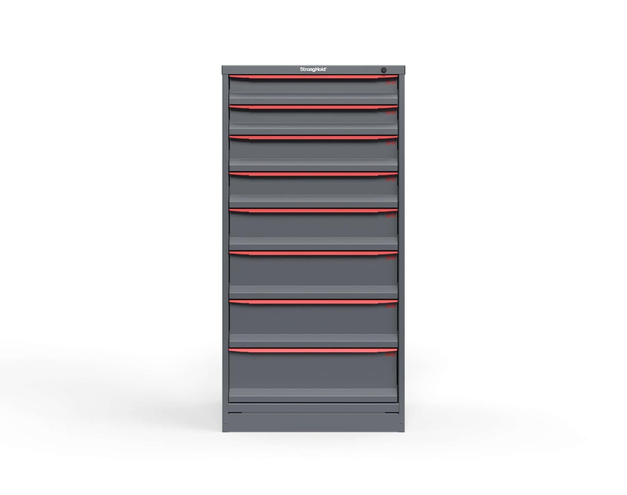 This cabinet offers a durable and dependable storage solution for industrial environments. Its 14‑ga welded steel construction provides strong resistance to wear and impact. The eight drawers, ranging from 4 to 8 inches deep, fully extend and hold up to 400 pounds, allowing efficient storage of a wide variety of items.