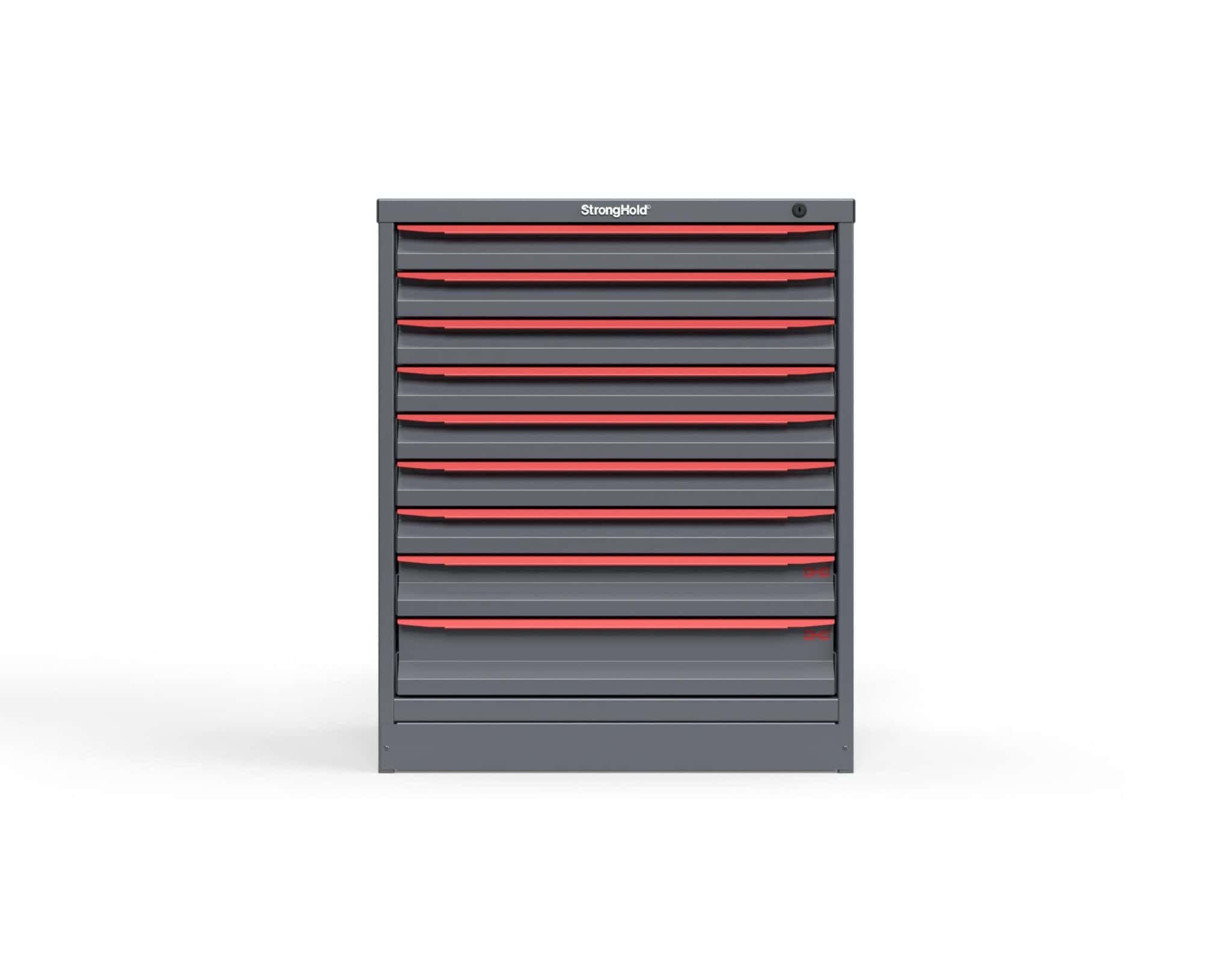 The Barron Equipment S3036-PPDAS-0902 Modular Drawer Storage Cabinet is engineered for maximum organization and durability in demanding workspaces. Featuring Strong Hold’s trusted construction, this tool storage cabinet is built from 14-gauge steel and offers nine heavy duty storage drawers—seven 2-inch drawers, one 3-inch drawer, and one 4-inch drawer, each with a 400 lb capacity. With a compact footprint of 30" W x 29" D x 36" H, it’s designed to optimize storage in tight areas while providing secure, efficient access to your tools and supplies.Â
