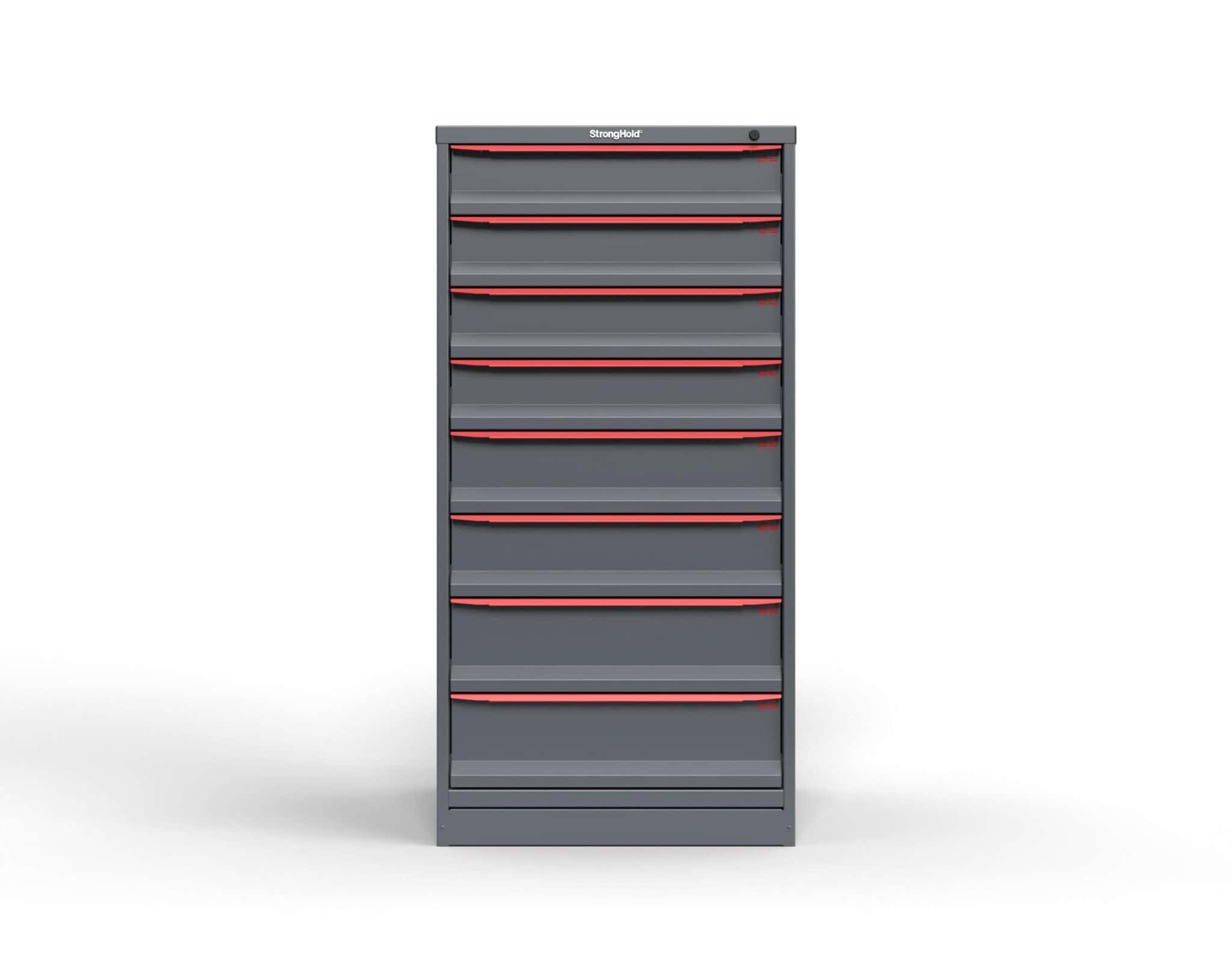 The S3060‑PPDAS‑0802 Modular Drawer Storage Cabinet is a tall, all‑steel tool storage cabinet built for demanding industrial environments. It stands 60 inches tall and includes eight drawers, each rated to hold 400 pounds. Made from 14‑gauge all‑welded steel, this Strong Hold cabinet offers dependable strength for daily use. It ships fully assembled, includes a divider kit, and features 3-inch integrated legs for easy forklift or pallet‑jack movement. The cabinet is made in the USA and backed by a 99‑year warranty.