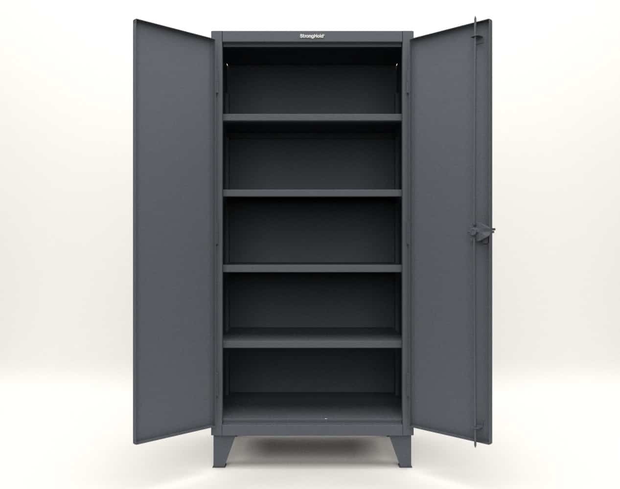 The steel body construction on this extra heavy-duty Stronghold cabinet makes for superior strength. This metal storage cabinet has a high weight capacity, along with a variety of locking options and colors.