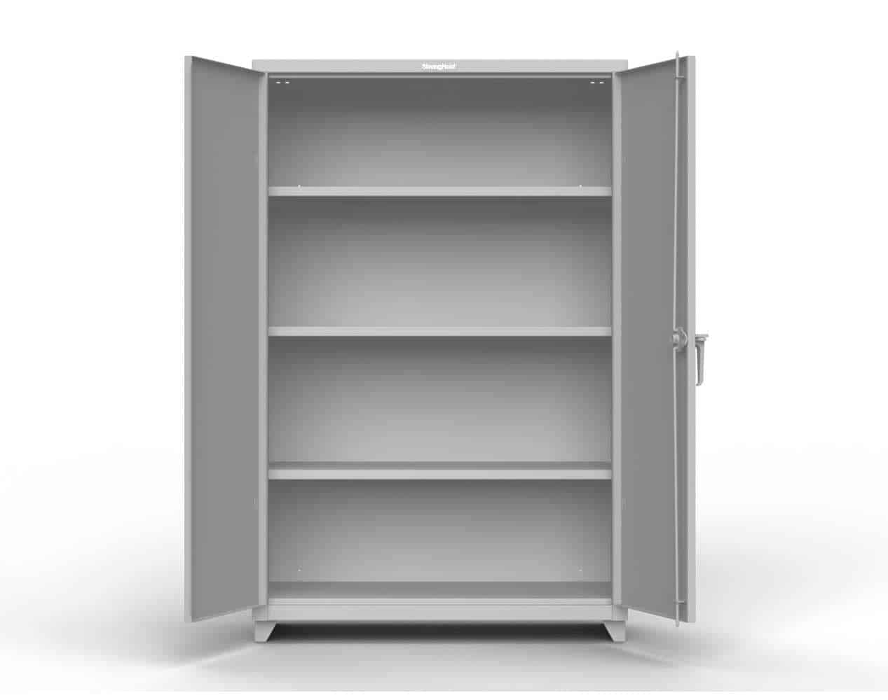 The steel body construction on this extra heavy-duty Stronghold cabinet makes for superior strength. This metal storage cabinet has a high weight capacity, along with a variety of locking options and colors.