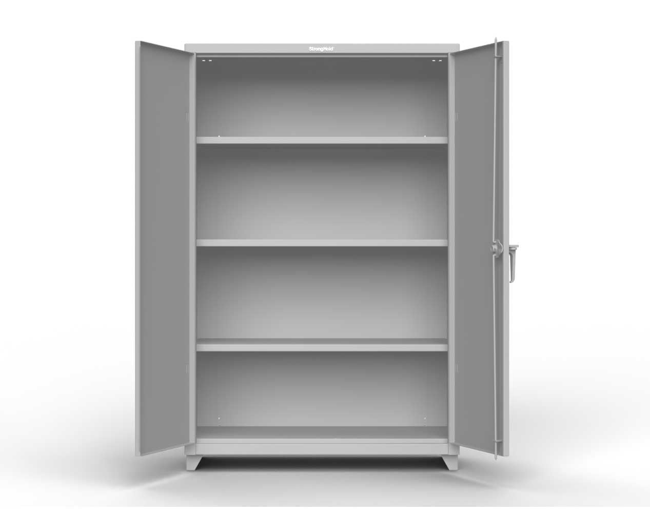 The steel body construction on this extra heavy-duty Stronghold cabinet makes for superior strength. This metal storage cabinet has a high weight capacity, along with a variety of locking options and colors.
