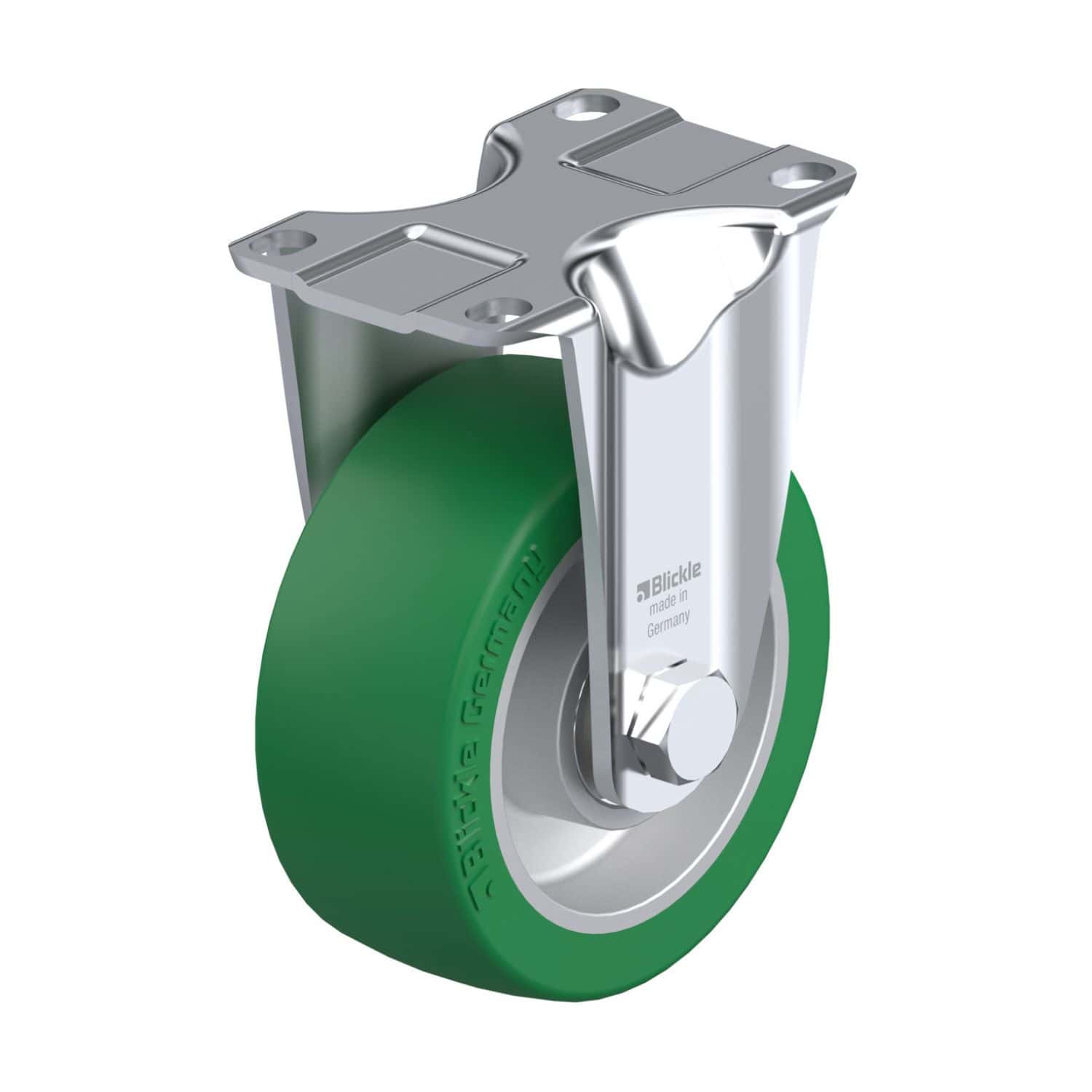 - Polyurethane Wheel:Â The caster is equipped with a Blickle Softhane polyurethane elastomer wheel, providing high abrasion resistance, non-marking, and non-staining properties.