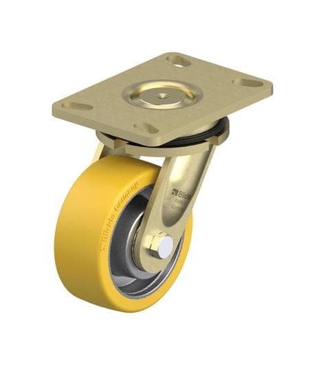 Blickle Extrathane® polyurethane wheels are built for heavy-duty performance, combining high load capacity with exceptional durability. These wheels feature a high-quality, reaction-injected polyurethane-elastomer tread that offers outstanding resistance to abrasion, cuts, and tear propagation—making them ideal for industrial environments with thresholds, sharp obstacles, and medium-speed transport.