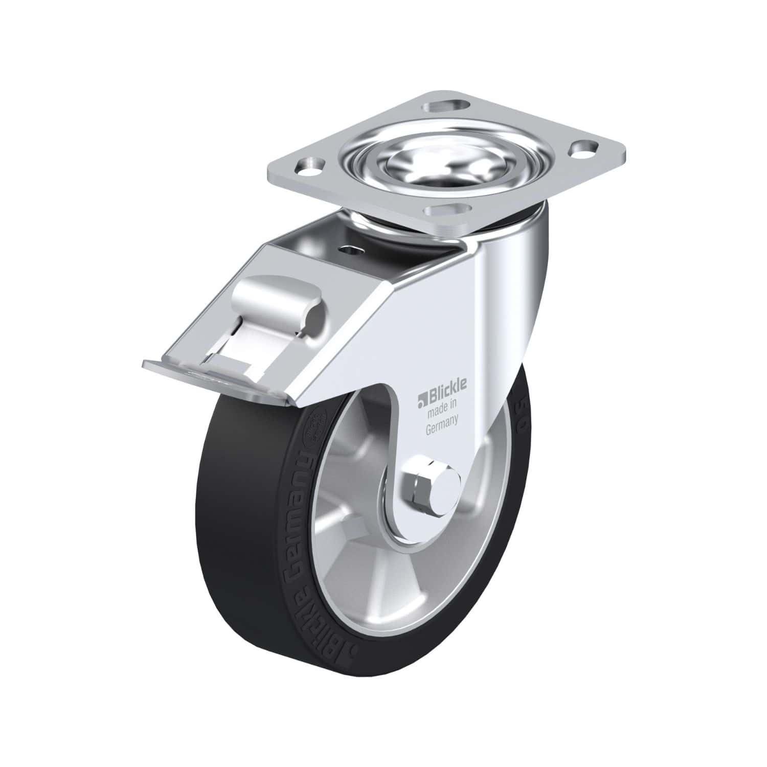 - Blickle EasyRoll: Elastic solid rubber tires vulcanized onto impact-resistant nylon wheel centers (POEV, ALEV, & SE series)
