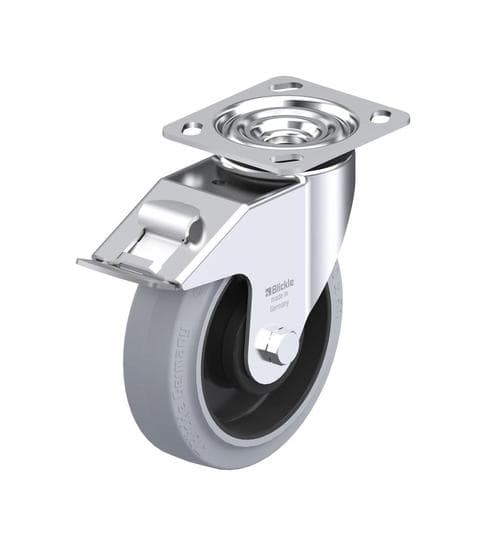 - Blickle EasyRoll: Elastic solid rubber tires vulcanized onto impact-resistant nylon wheel centers (POEV, ALEV, & SE series)