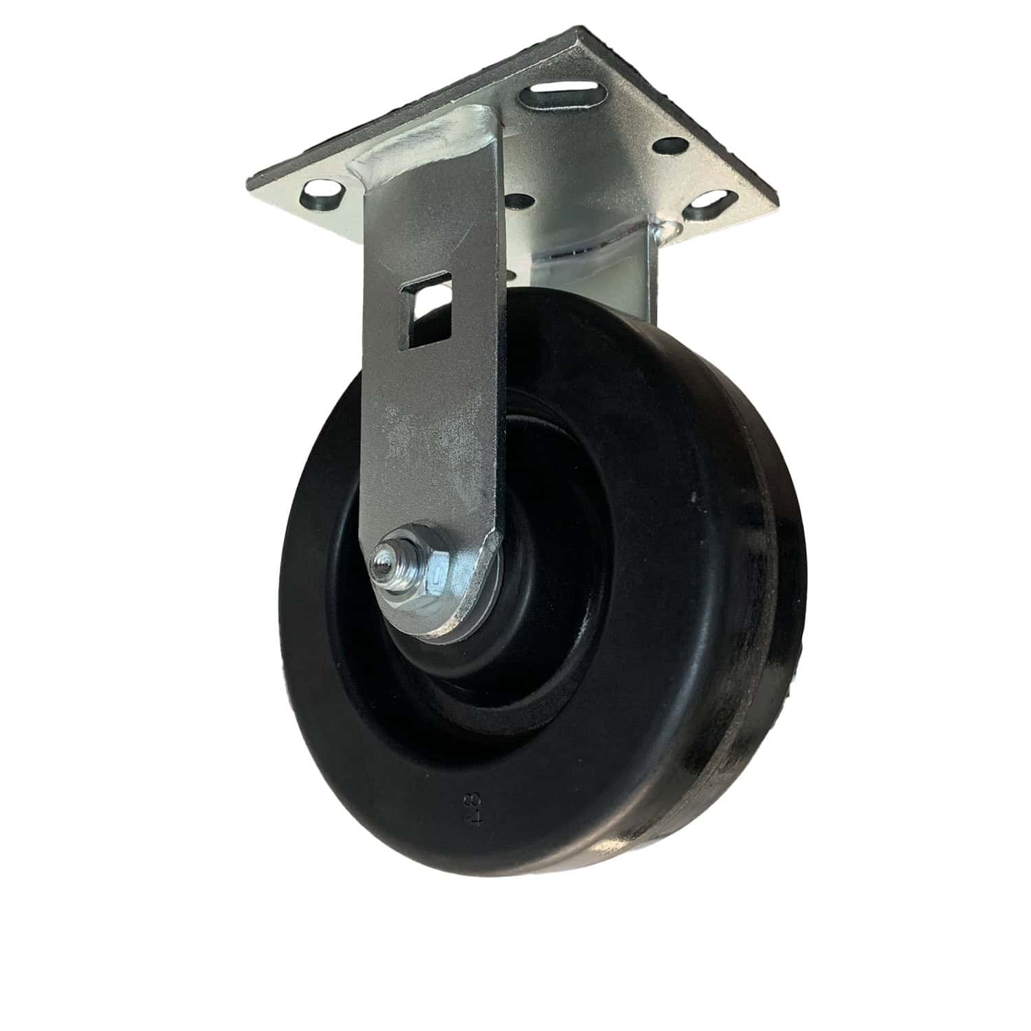 The 41.62.50.PHR is a 6-inch industrial rigid caster featuring a phenolic wheel and roller bearing. This caster is part of the 41 Series, designed for medium to heavy-duty applications in industrial environments. Phenolic wheels are known for their high weight capacity and resistance to oil, grease, gasoline, and mild acids, making them an economical and reliable choice for a variety of settings. The roller bearing ensures smooth operation and durability, ideal for frequent towing, pushing, and pulling tasks.