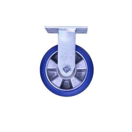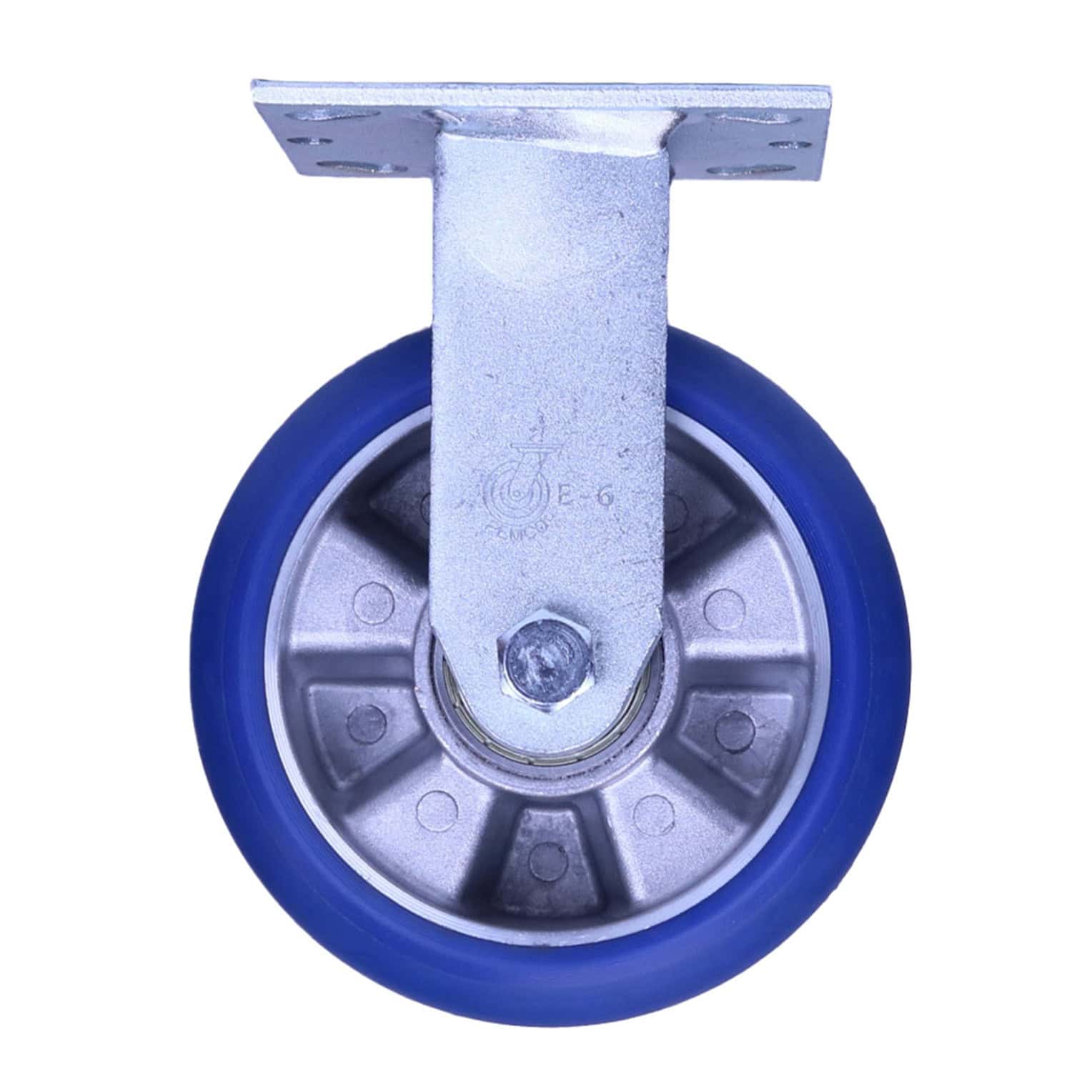 This heavy duty kingpinless rigid caster has a polyurethane wheel with a radius tread and a diameter of 6 inches, making it ideal for the most demanding industrial applications. This rigid caster is designed for use in tandem with our kingpinless swivel casters for optimal performance and mobility in high-stress environments. Most carts use 2 swivel and 2 rigid casters for the best combination of maneuverability and directional stability, especially when handling exceptionally heavy loads.