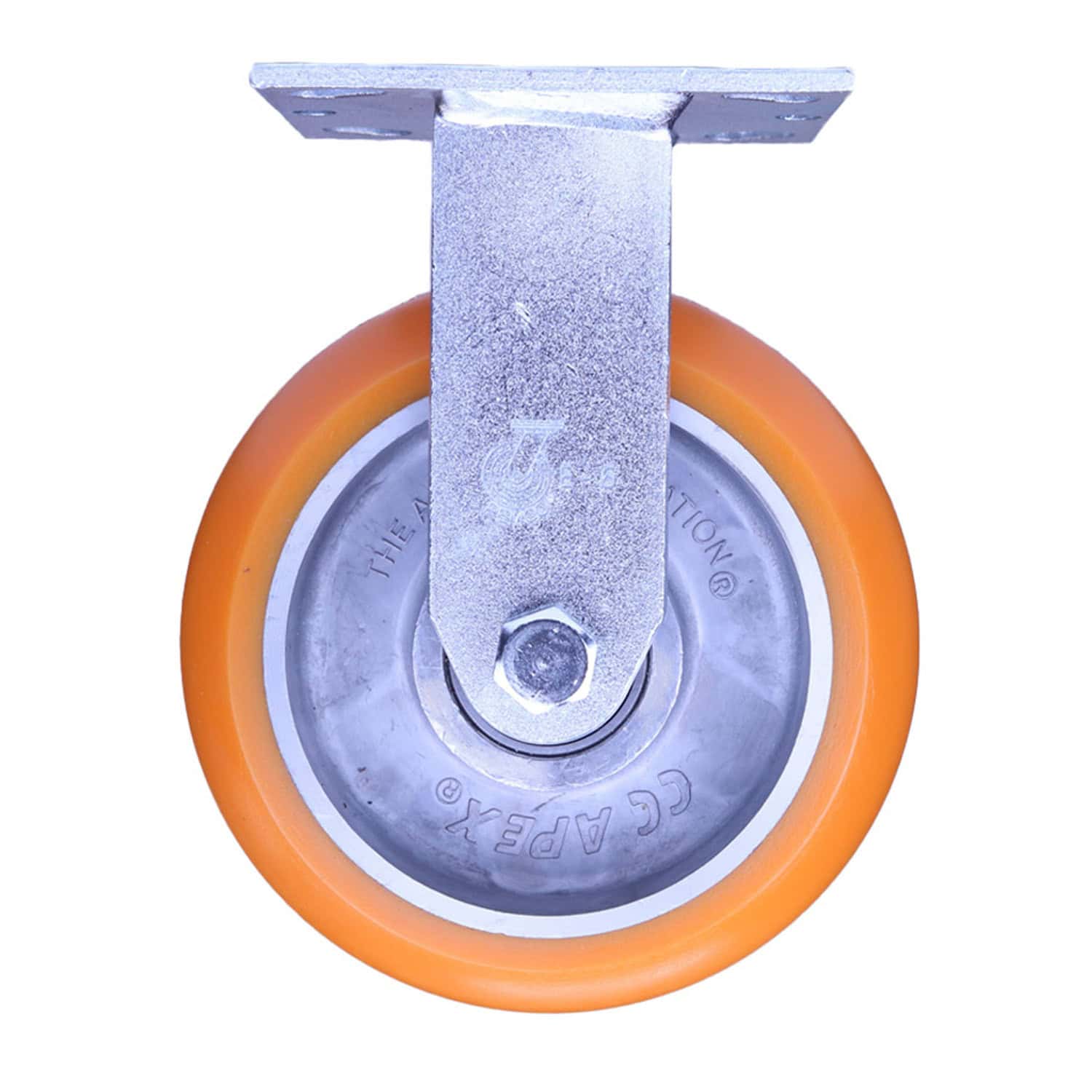 This industrial rigid caster has a polyurethane caster wheel with a diameter of 6 inches and is ideal for heavy duty industrial applications. This fixed caster, or rigid caster, is typically used in tandem with our 60 Series swivel casters. Most carts use 2 swivel and 2 rigid casters. This non-swivel caster offers excellent durability and load capacity for demanding industrial environments with a regular top plate mounting.