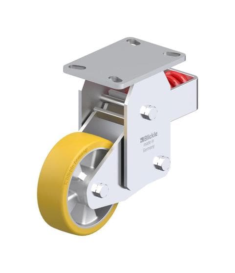 Blickle Extrathane® polyurethane wheels are built for heavy-duty performance, combining high load capacity with exceptional durability. These wheels feature a high-quality, reaction-injected polyurethane-elastomer tread that offers outstanding resistance to abrasion, cuts, and tear propagation—making them ideal for industrial environments with thresholds, sharp obstacles, and medium-speed transport.