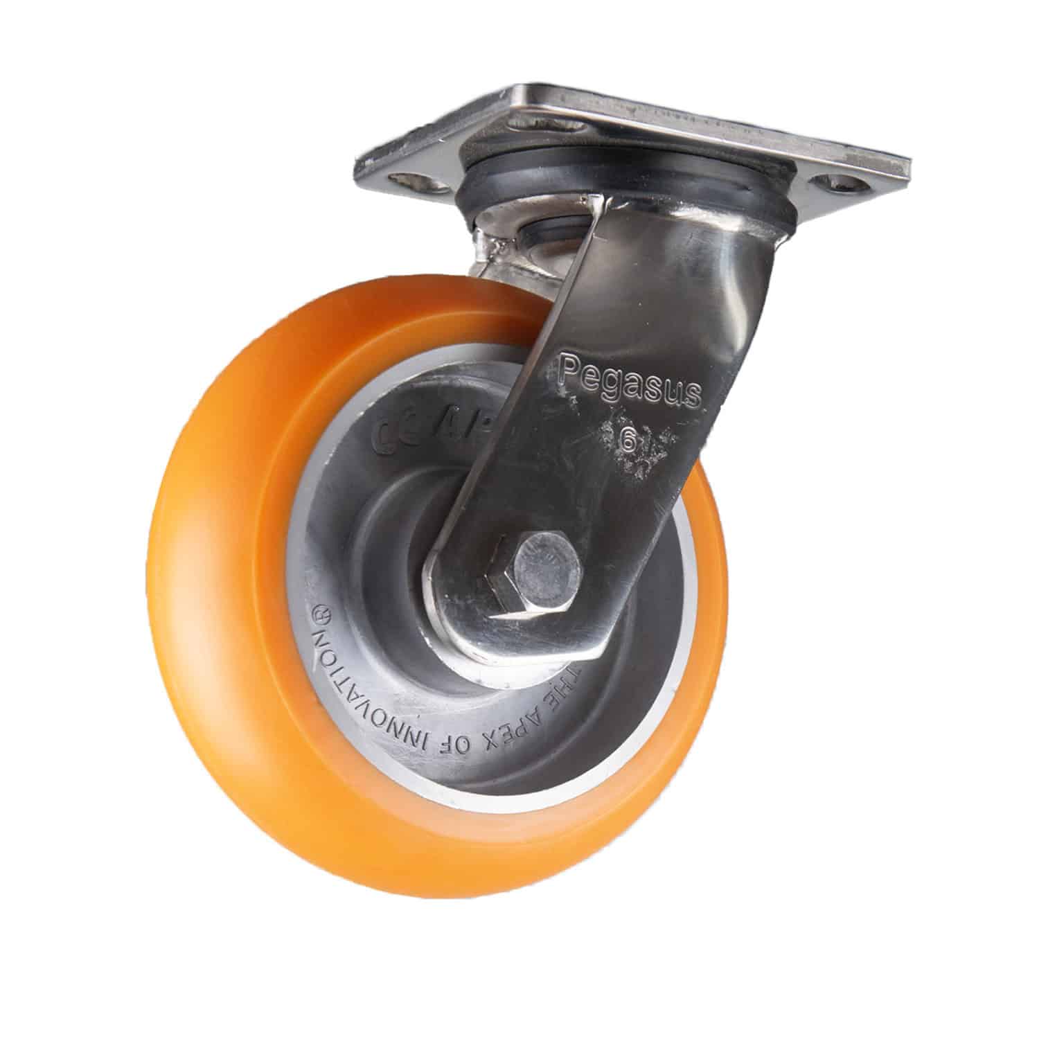 The main benefit of stainless steel casters is their superior corrosion resistance and ability to withstand harsh cleaning agents, moisture, and chemicals. In addition to the benefits of stainless steel construction, polyurethane wheels have their own advantages such as superior floor protection, longer service life, low rolling resistance, high dynamic load capacity and high tear resistance. Click here to learn more about our polyurethane wheels.