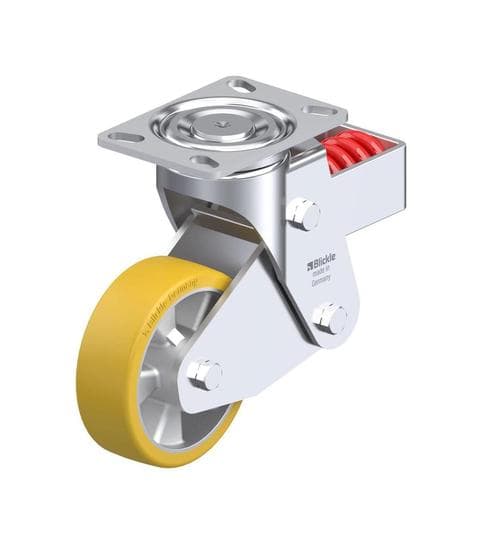 Blickle Extrathane® polyurethane wheels are built for heavy-duty performance, combining high load capacity with exceptional durability. These wheels feature a high-quality, reaction-injected polyurethane-elastomer tread that offers outstanding resistance to abrasion, cuts, and tear propagation—making them ideal for industrial environments with thresholds, sharp obstacles, and medium-speed transport.