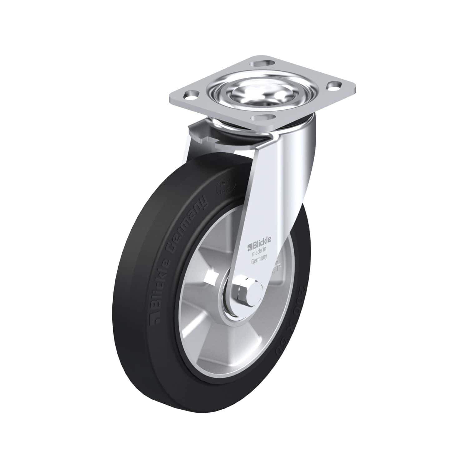 - Blickle EasyRoll: Elastic solid rubber tires vulcanized onto impact-resistant nylon wheel centers (POEV, ALEV, & SE series)