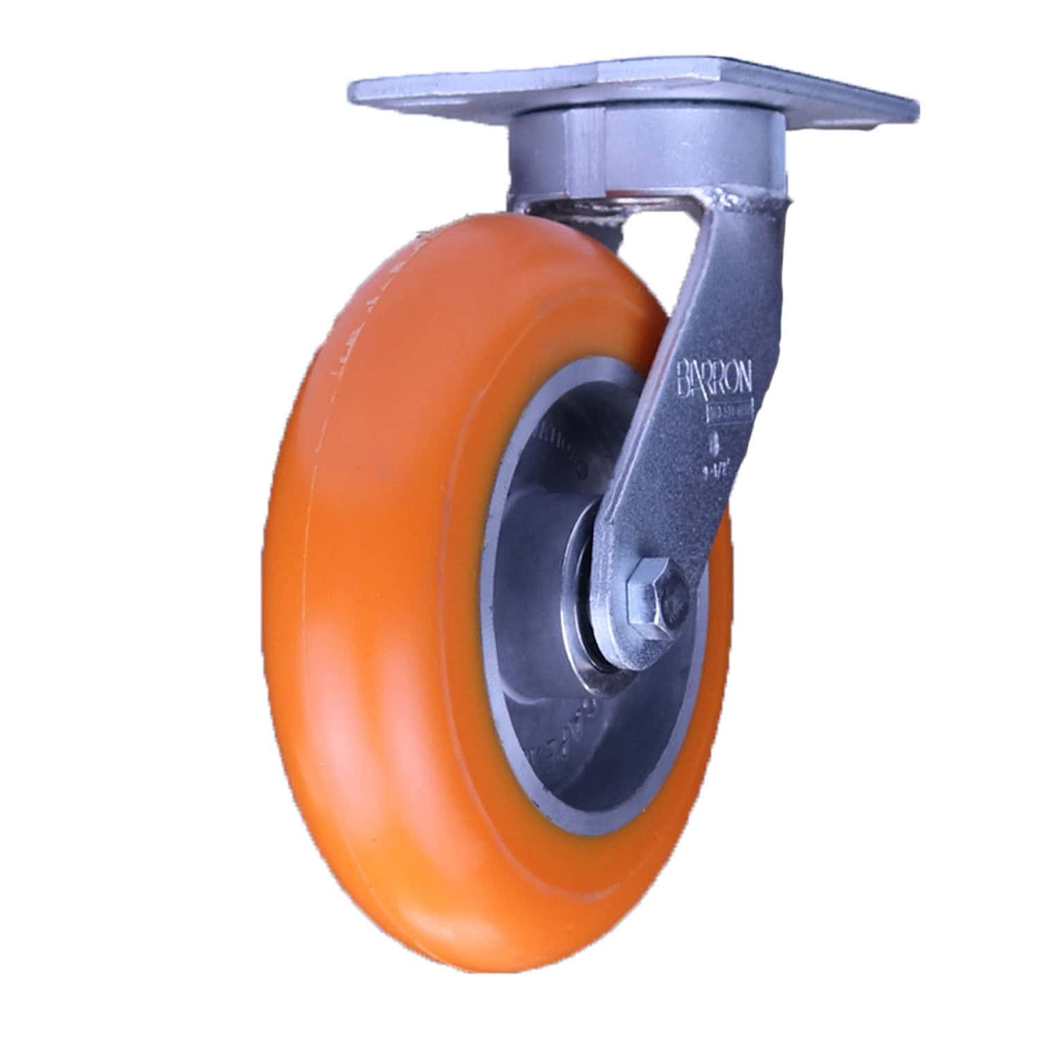This kingpinless swivel caster has a polyurethane caster wheel with a diameter of 8 inches and is ideal for heavy duty industrial applications. This swivel caster has more benefits and better overall ergonomics than the standard industrial caster. The 60.82.51.APB features a larger top plate (indicated by "51" in the SKU) for enhanced stability and mounting options, making it ideal for applications requiring a more robust connection to the equipment. Ball bearings are sealed and pre-lubricated, providing better ergonomics and less maintenance.