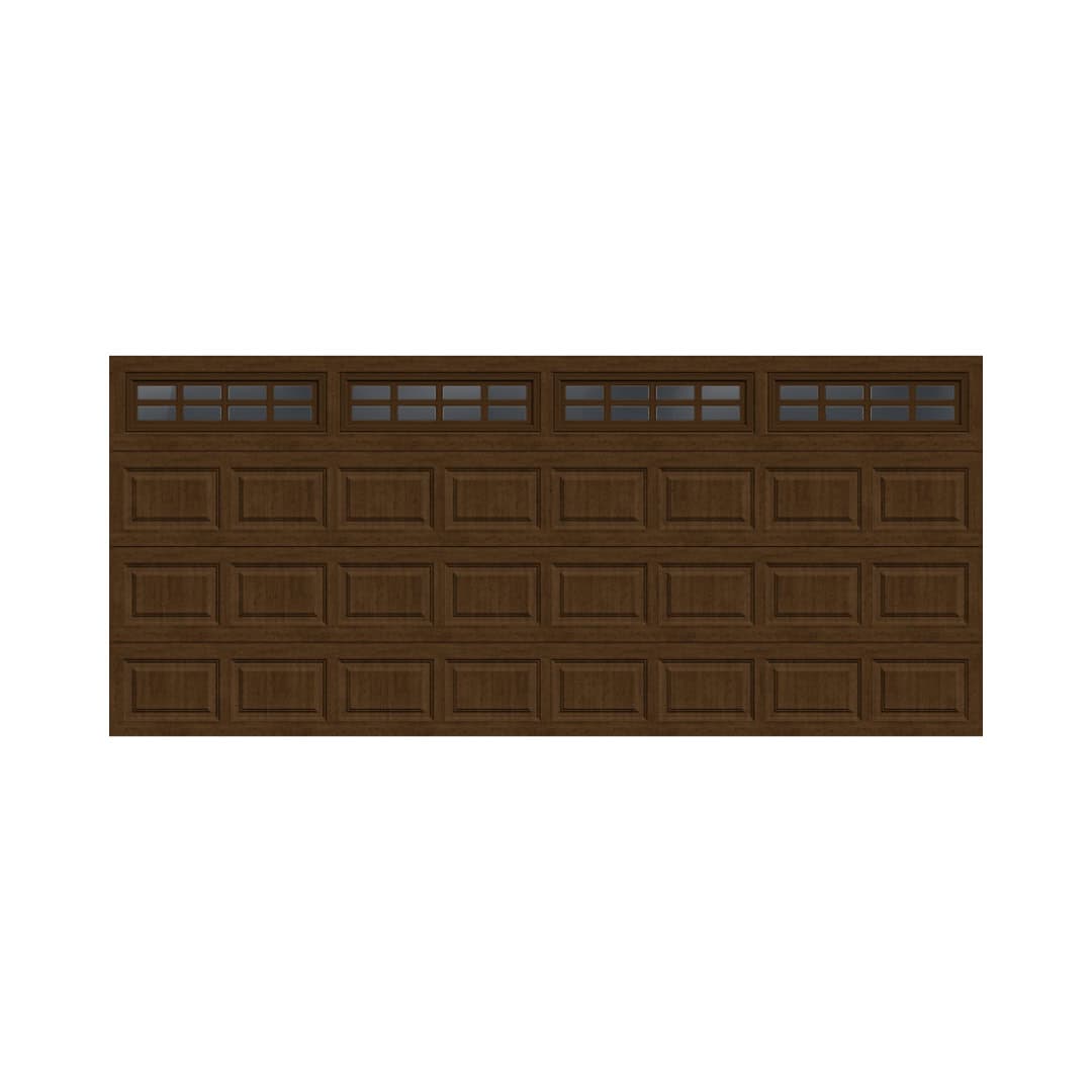 Bring timeless style and durability to your home with the Clopay Classic Steel Garage Door in a rich Walnut finish. This clearance model offers a perfect blend of traditional elegance and modern performance. Measuring 16 ft W x 8 ft H, it features frosted windows that allow natural light while maintaining privacy. Built by Clopay—one of the most trusted names in garage doors—this door delivers: