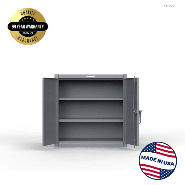 Our counter-height cabinet with doors consists of 12-gauge steel, providing exceptional strength and durability due to its thicker construction compared to lower gauge steel. This makes it highly resistant to impact damage, bending, and warping. It is a reliable solution for storing valuable and sensitive items, as it is less susceptible to break-ins or tampering.