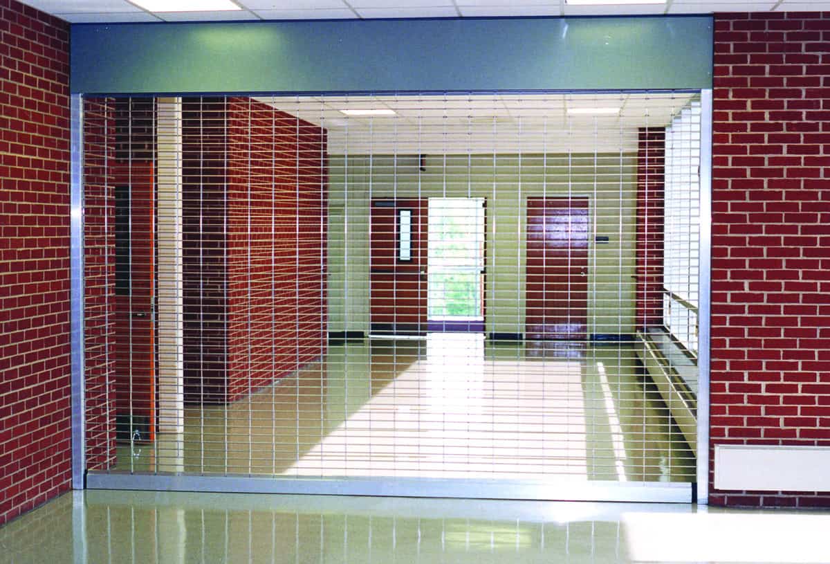 Our emergency response gate system does not mean lowered security. Many facilities, such as schools, need to protect sections of the building after normal hours while other parts, like sporting arenas and gymnasiums may have longer access hours. Rolling security gates are a perfect solution to block access to other parts of the building. Our emergency safety gates allow instant optional means of exit or egress from the building when the need arises. Our safety gates still offer all the rugged durability and low maintenance all of our security grilles offer while providing visibility and air flow. Manual locking or unlocking is not required and the automatic opening feature does make the roll down security gate less secure. When any type of forced opening is attempted, AutoLock automatically secures any closed security grille, preventing manual forced opening. AutoLock remains disengaged during normal and emergency operation.