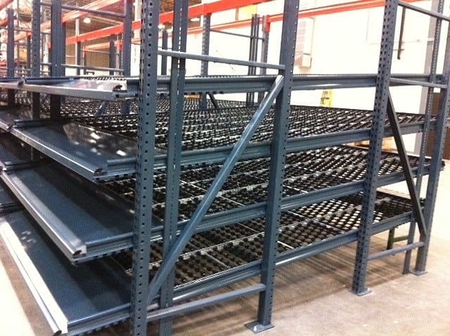 Barron Equipment offers Dyna-Deck carton flow racking for fast, organized storage of cartons, cases, and totes. This flow rack system drops into existing pallet racking and uses gravity to move items from the loading side to the picking side. Whether you're setting up storeroom carton flow shelving or a full warehouse system, Dyna-Deck improves picking speed and saves space.