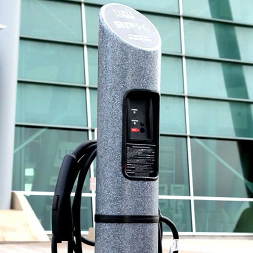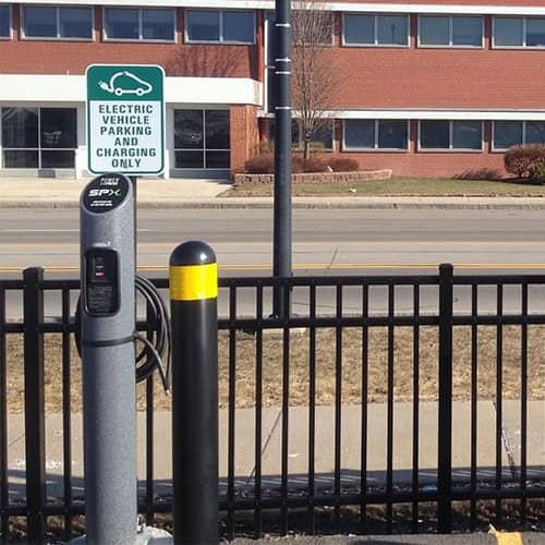 Barron electric car charging station fits well in many areas where people park for work, shopping, and events.