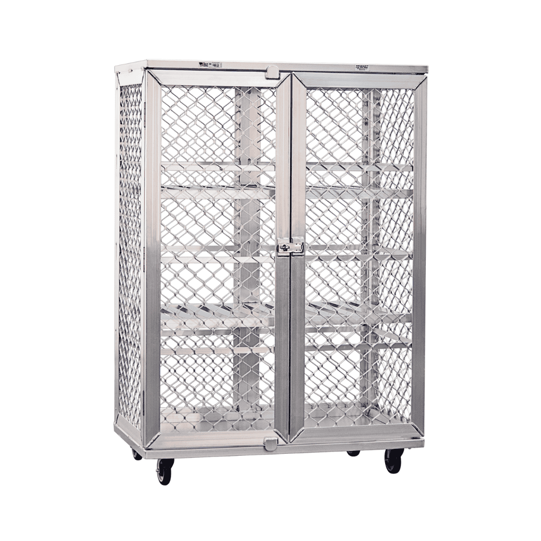 The Heavy Duty Security Cage with Shelves provides a safe and reliable way to protect valuable inventory, tools, and equipment. Built from all‑welded aluminum with wire mesh panels, this security cage keeps contents visible while preventing unauthorized access. Available in both stationary and mobile versions, it offers a flexible solution for businesses that need secure, organized storage in warehouses, retail spaces, labs, and more.