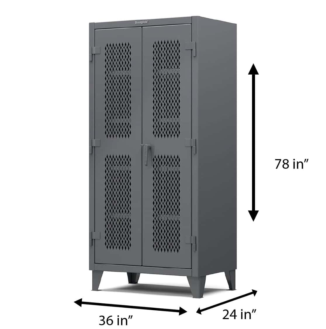 Stronghold industrial ventilated storage cabinets from Barron Equipment are perfect for keeping storage visible and organized. What's more, these special storage units are 12 gauge steel construction and powder coated with diamond perforated steel doors that are good for storing items that require ventilation.