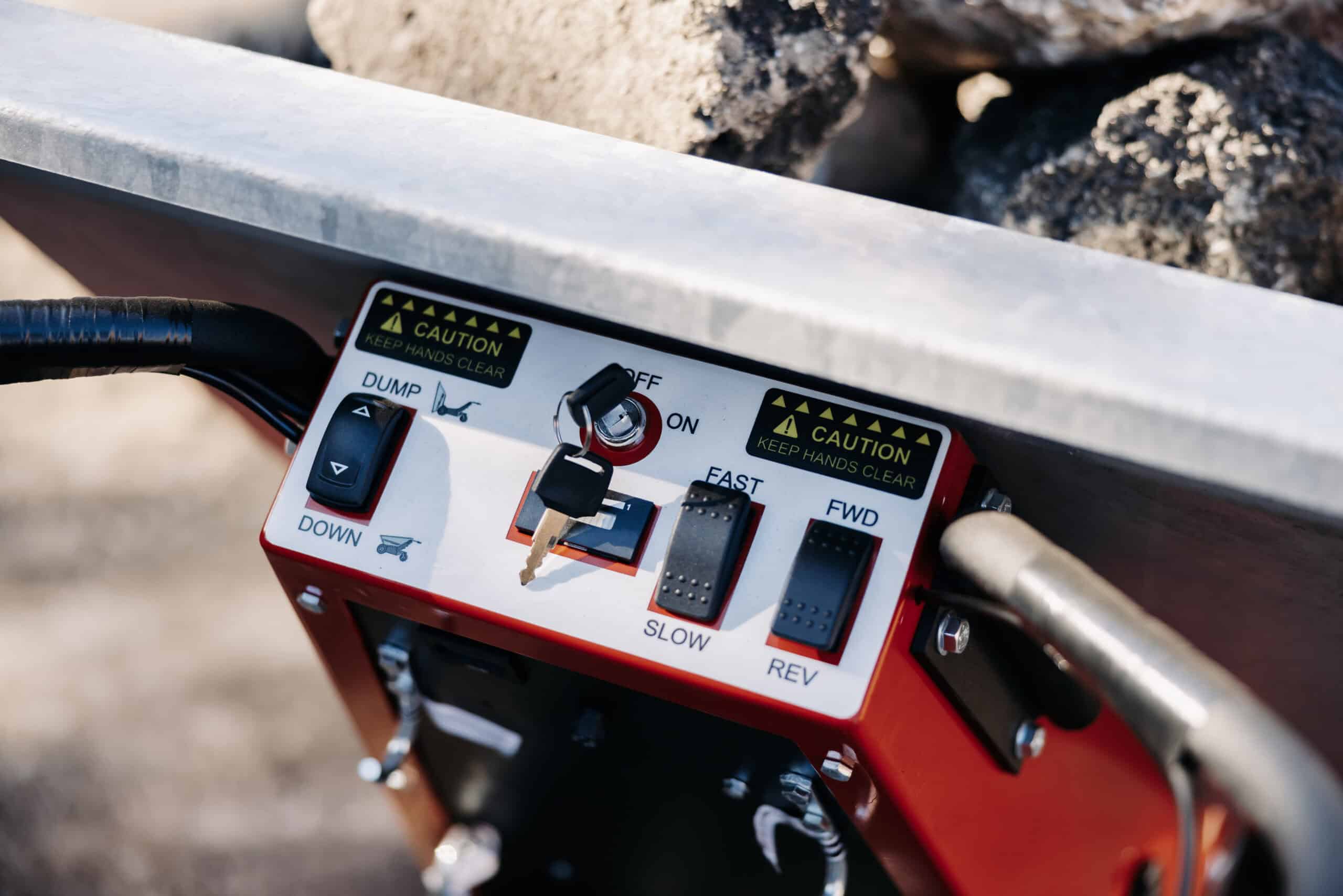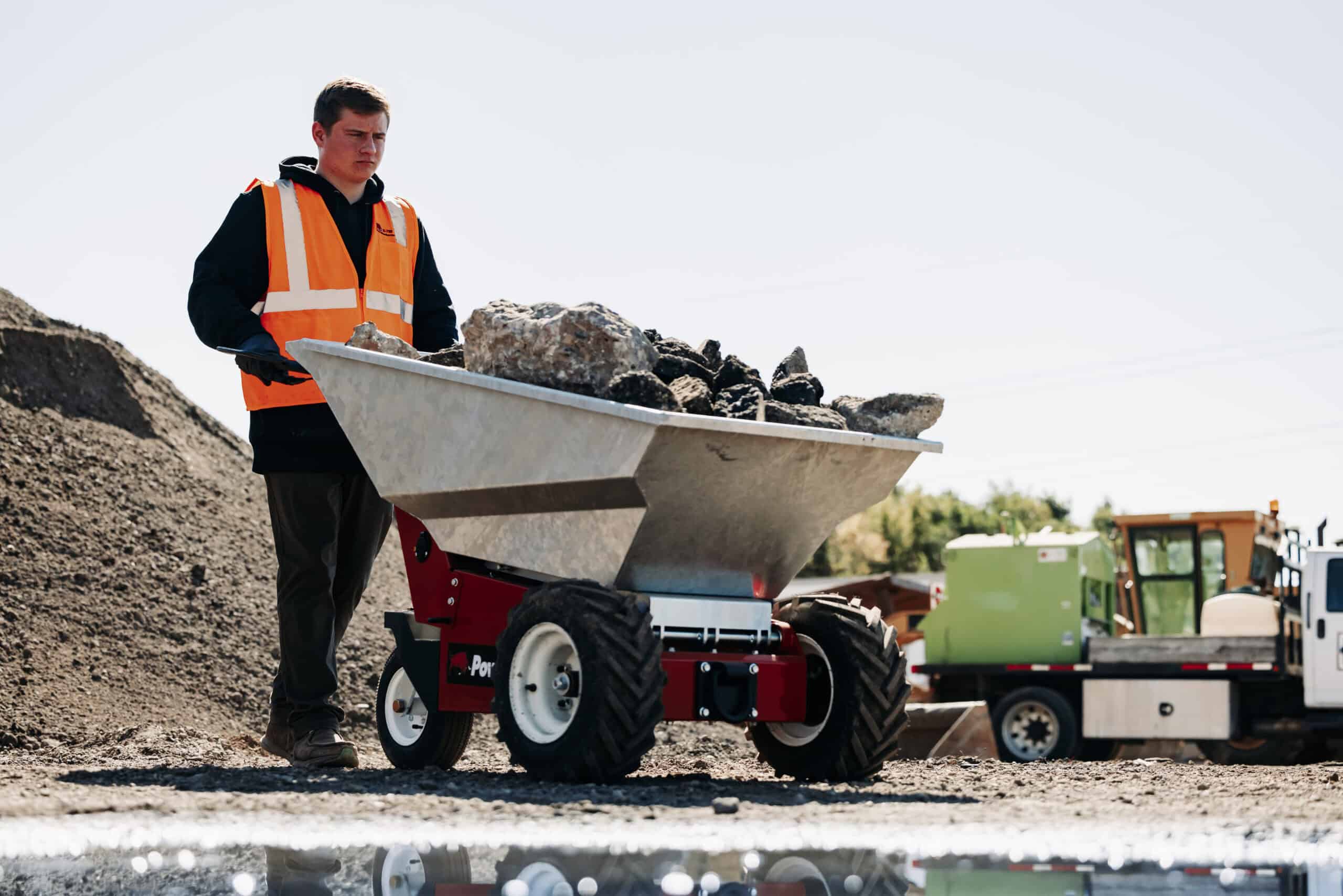 Designed to minimize strain, the E-750 electric wheelbarrow provides push-button powered dump capability. It is the ideal piece of equipment for construction, demolition, landscape, farms and more with multiple standard and custom attachments available.