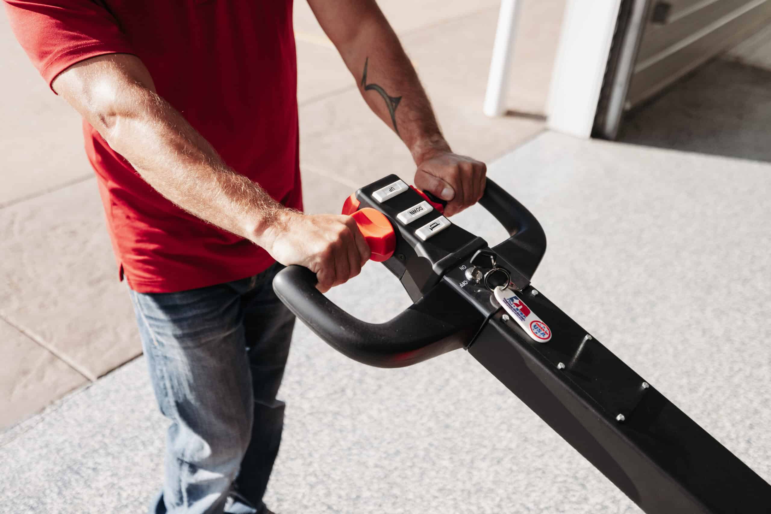 The MFC-100 includes a high-powered actuator, which makes lifting loads simple. Our two-wheeled PowerPushers can be modified to incorporate lifting functionality, as well.