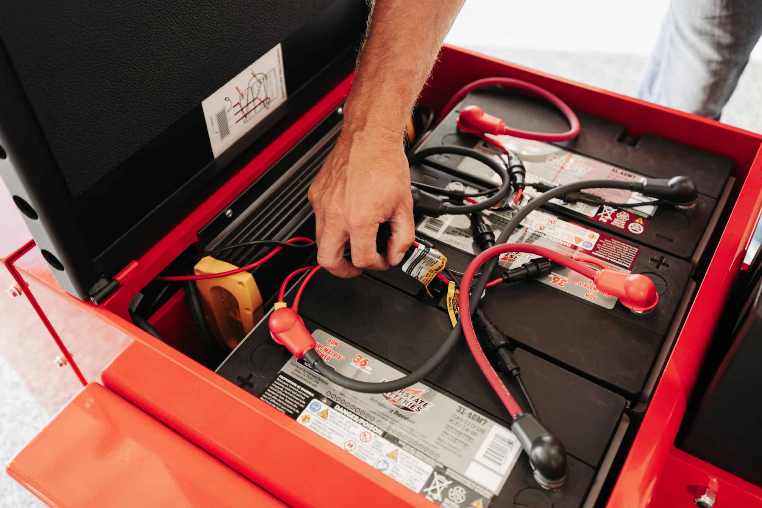 No. PowerPushers use deep-cycle marine batteries, which can also be found in a range of boats and other types of waterborne vehicles.