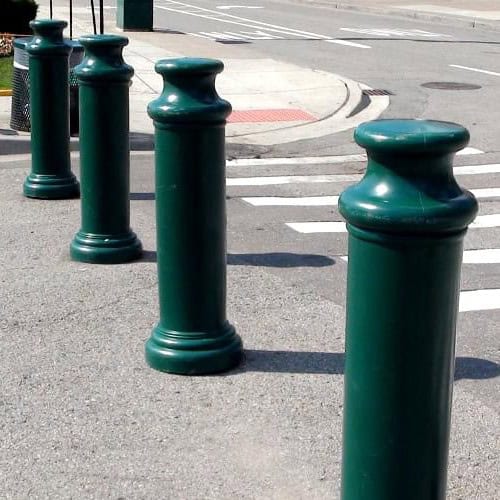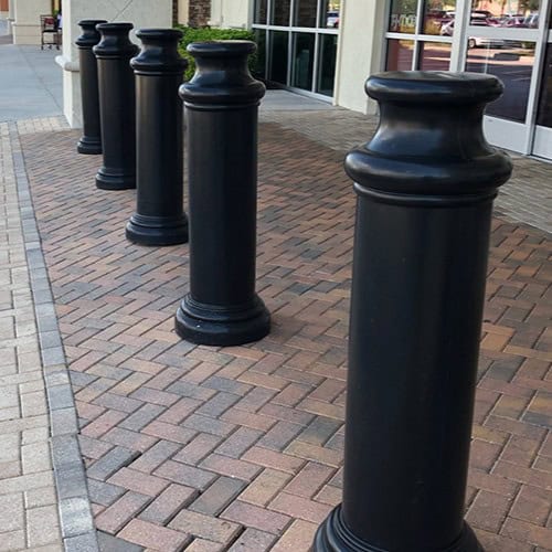 Pawn decorative bollard covers enhance the appearance of steel posts while helping guide foot traffic and improve visibility around buildings.