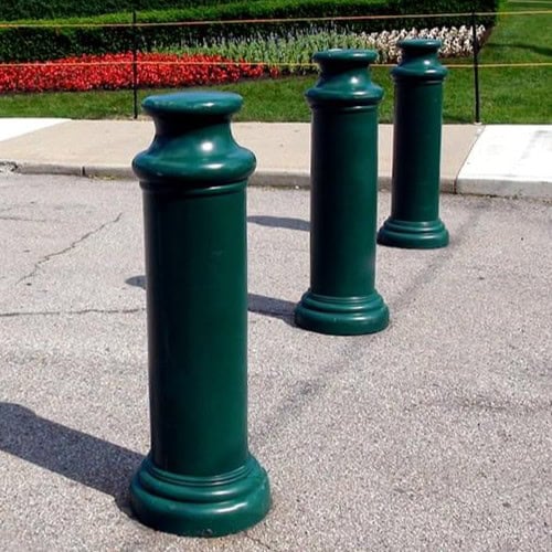 Barron Equipment and Overhead Door offers decorative bollard covers designed to improve the look of security posts while providing a clean, finished appearance. The Pawn‑style decorative bollard features a wide base and flat‑topped design made from 0.25 inch nominal‑wall polyethylene thermoplastic.