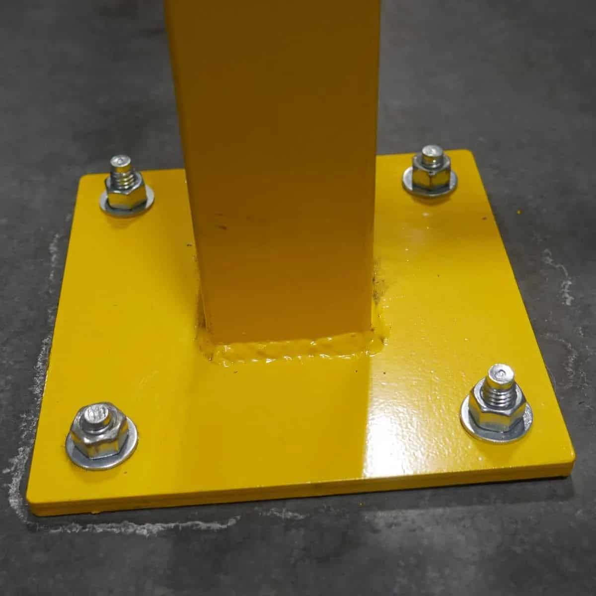 - Panels are made of 10 gauge welded wire and patterned in a 1 1/4" x 2 1/2" rectangular mesh. The mesh is then welded into a 1 1/4" x 1 1/4" 13 gauge rolled formed angle. Drop-in mounting brackets are welded to the guarding panel and slip into the upright posts. Strong 2" x 2" 14 gauge tube posts with lasered slats accept the tabs and reinforce the machine guarding system.