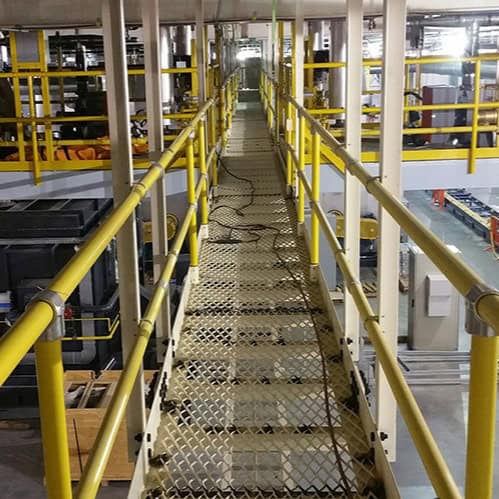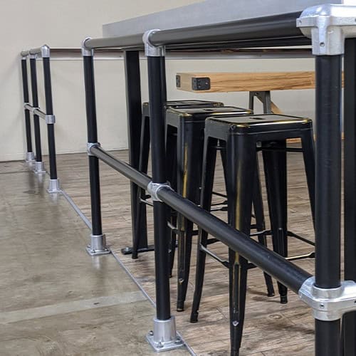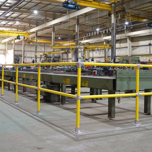 This industrial handrail system is built to last. The steel pipe framework delivers robust support and stability, while the plastic rails and fittings help reduce corrosion, repainting, and routine maintenance. The modular design allows for straightforward installation and easy field adjustments, so layouts can be tailored to your space without complex fabrication.