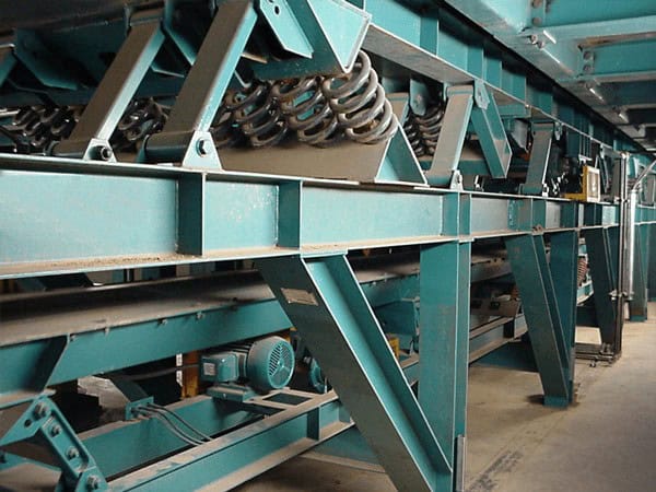 General Kinematics SYNCRO-COIL® conveyors are designed for heavy or medium-duty material load applications. They feature rugged, long life alloy coil springs and are ideal for applications with heavy-duty trough construction, large material loads, or operation in dusty or difficult atmospheres.