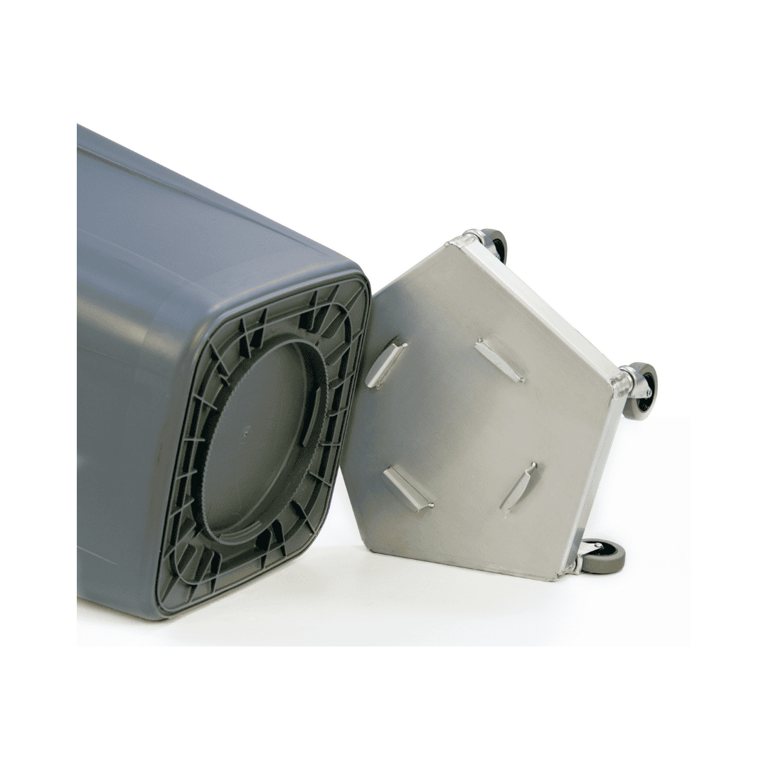 This trash can dolly is built for stability and smooth movement. It includes five 3-inch swivel casters, giving the dolly a wide, tip‑resistant footprint for safe movement. The all‑aluminum frame is heavy duty, corrosion‑resistant, and built to last. Four locking tabs with a twist‑lock system keep containers secured during transport.
